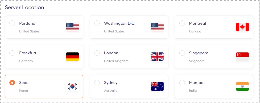 케미클라우드의 장점이 바로 해외 저가 호스팅 중 유일하게 한국 서울에 서버가 위치해 있다는 것입니다. 반드시 서버 로케이션은 한국을 선택하세요.