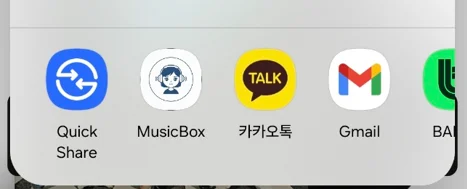 [ibox/tips]공유하기 > 하단 앱들 중 …더보기 클릭 > 뮤직박스 앱 선택[/ibox]